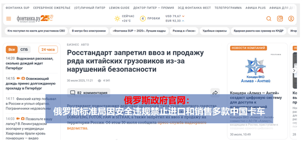 2025年7月30日,俄罗斯联邦手艺监管和计量局发布决定:全面春风、福田、一汽和中国沉汽四个中国品牌的部门车型正在俄罗斯进口和发卖。