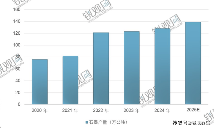 石墨分为天然石墨和人制石墨两大类,天然石墨来自石墨矿藏。石墨因其奇特的物理化学性质,正在冶金、机械、电子、军工、国防、航天航空等范畴有普遍使用。锐不雅征询发布的《2025-2030年中国石墨烯行业深度调研及投资计谋阐发演讲》显示,此中中国石墨产量123万公吨,产量居全球第一。2024年产量约为128万公吨。锐不雅征询阐发师预测,2025年中国石墨产量将接近140万公吨。